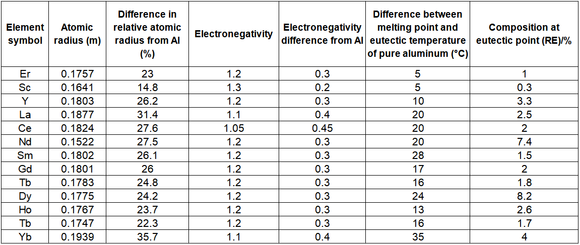 Rare earth elements such as La, Ce, Sc, Er, Gd, and Y contribute to aluminum alloys through multiple mechanisms: